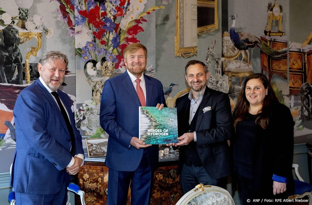 Koning Willem-Alexander heeft woensdagmiddag op Paleis Huis ten Bosch het eerste exemplaar van het boek Heroes of Hydrogen in ontvangst genomen. Het fotoboek omvat een collage van belangrijke waterstofprojecten in Europa.