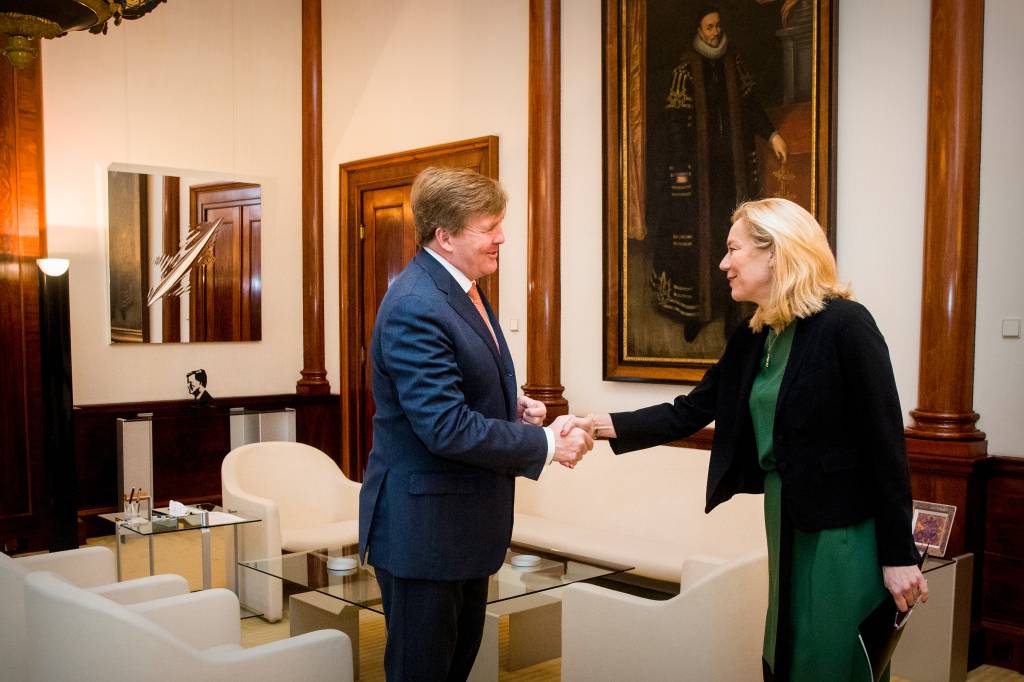 Koning Willem-Alexander heeft dinsdag weer kennisgemaakt met een van de nieuwe bewindslieden van het kabinet Rutte III. Dit keer was minister Sigrid Kaag van Buitenlandse Handel en Ontwikkelingssamenwerking aan de beurt. De koning ontving haar in zijn werkkamer op Paleis Noordeinde.