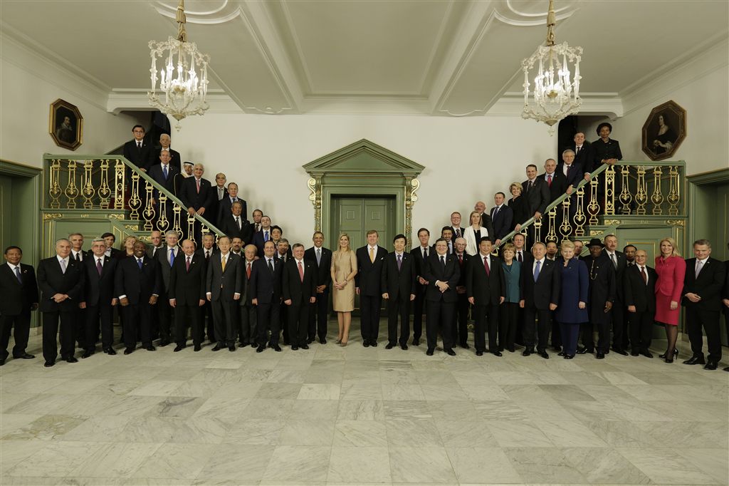 DEN HAAG – Koning Willem-Alexander en zijn vrouw Máxima hebben samen met alle wereldleiders die bij hen op bezoek zijn geposeerd voor een groepsfoto. Dat deden ze voorafgaand aan een diner op Paleis Huis ten Bosch in Den Haag.