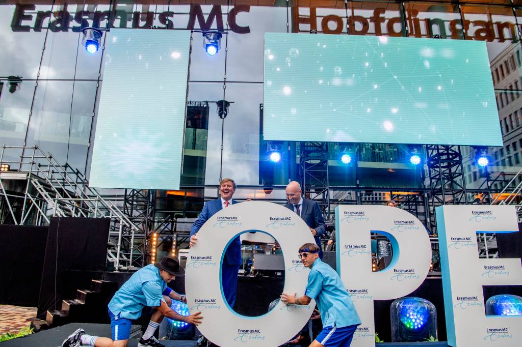 Met het plaatsen van een grote O bij de letters P, E en N voor de hoofdingang heeft koning Willem-Alexander donderdagmiddag in Rotterdam het nieuwe Erasmus Medisch Centrum officieel geopend. Het ziekenhuis was al in mei in gebruik genomen.