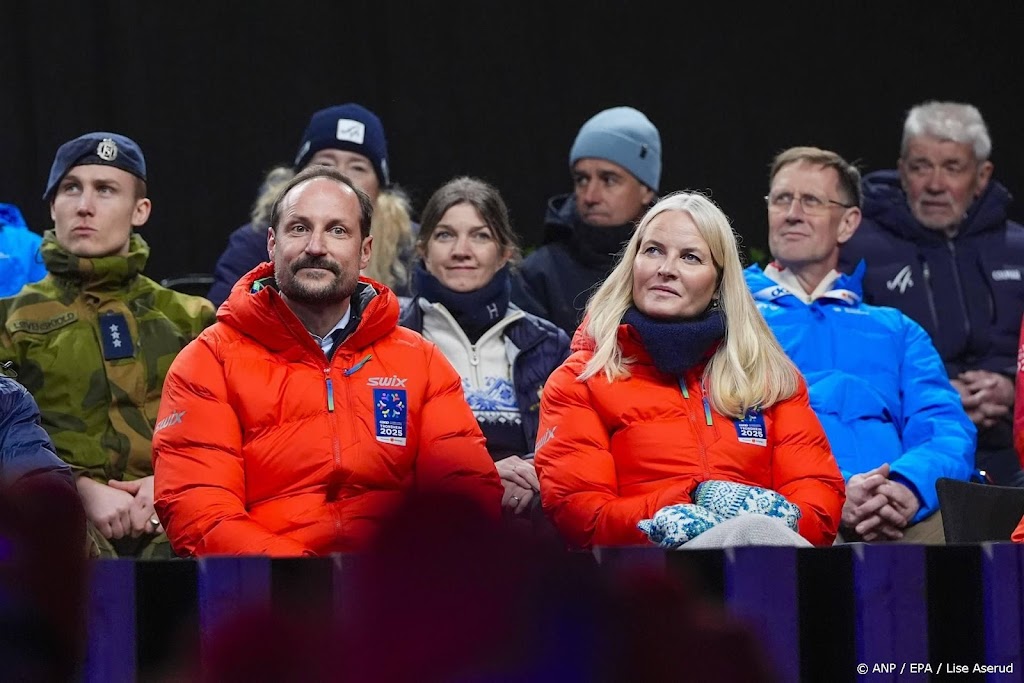 De Noorse kroonprins Haakon, kroonprinses Mette-Marit en koningin Sonja hebben vrijdag een ontmoeting gehad met kinderen met een beperking op het WK Nordic Skiën.