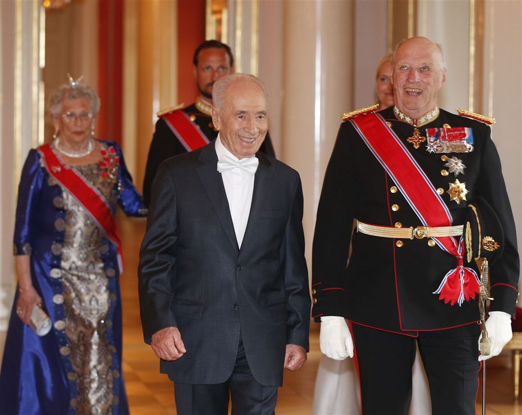 OSLO – De Noorse koning Harald is samen met het Noorse kroonprinselijk paar dinsdagavond aanwezig bij het banket dat de Noorse regering in de vesting Akershus aanbiedt aan president Shimon Peres. Die is als eerste Israëlisch staatshoofd uit de geschiedenis op staatsbezoek in Noorwegen.