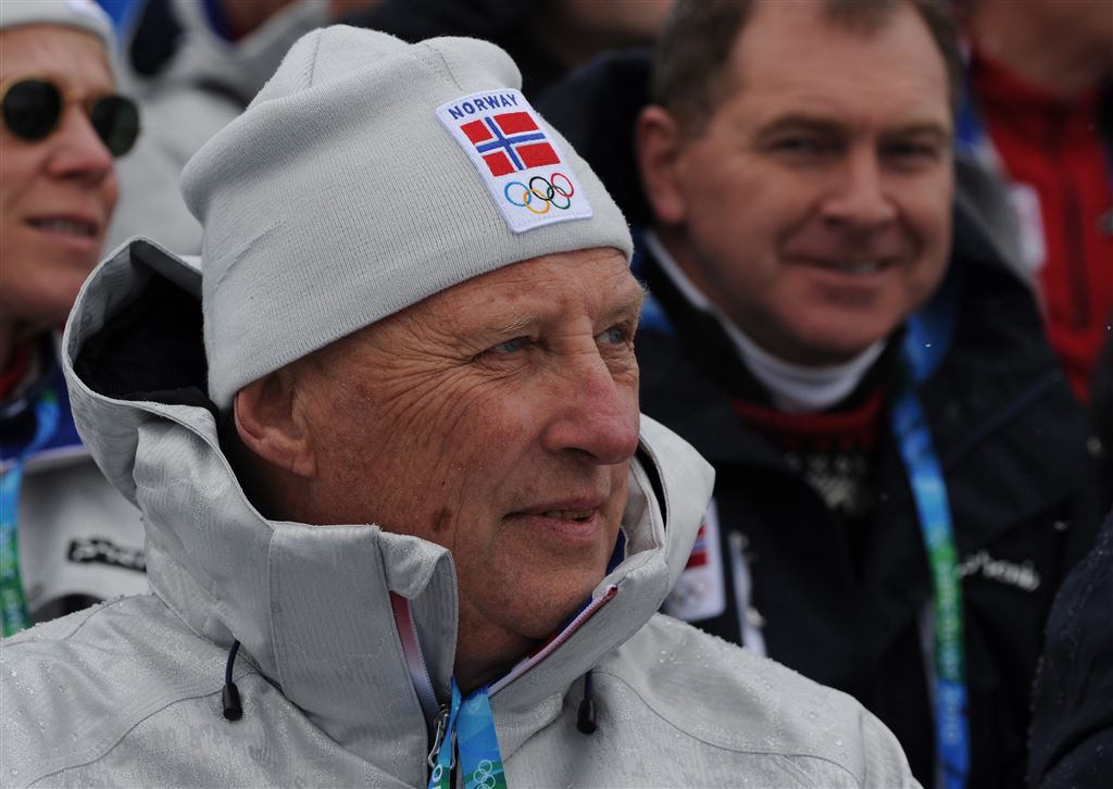 Koning Harald moedigt dit weekeinde weer een groot aantal Noorse skiërs aan. De koning neemt voor de Noorse skikampioenschappen in Lygna plaats op de tribune.