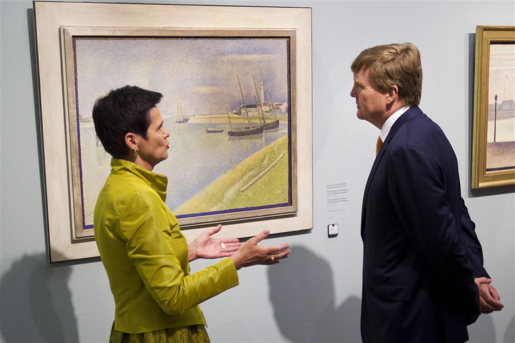 Voor het eerst toont het museum nu de schilderijen van Seurat uit de eigen collectie, het gedurfde Le Chahut en de verstilde zeegezichten van Honfleur, Port-en-Bessin en Gravelines, in een bredere context. Koning Willem-Alexander kreeg van museumdirecteur Lisette Pelsers een rondleiding langs de werken.