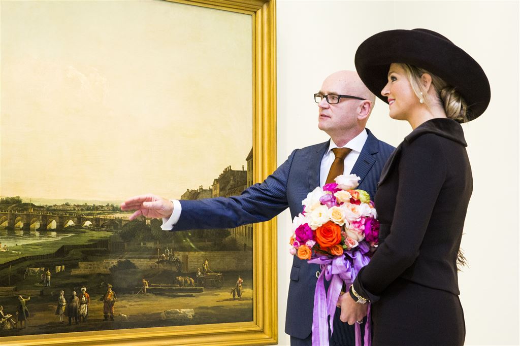 GRONINGEN – In het Groninger Museum opende koningin Máxima vrijdagmorgen de nieuwe tentoonstelling Het geheim van Dresden. Van Rembrandt tot Canaletto.