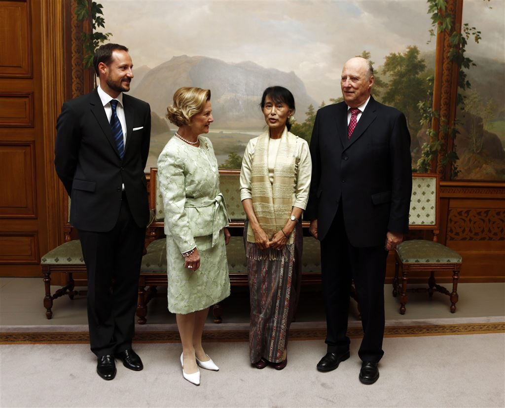 Die kreeg in 1991 de Nobelprijs toegekend. Aung San Suu Kyi kon die niet persoonlijk in ontvangst nemen omdat ze door het militaire bewind in Myanmar onder huisarrest was geplaatst. Pas in juni 2012 kon ze naar Oslo reizen om alsnog haar aanvaardingstoespraak te houden en te worden ontvangen door de Noorse koninklijke familie.