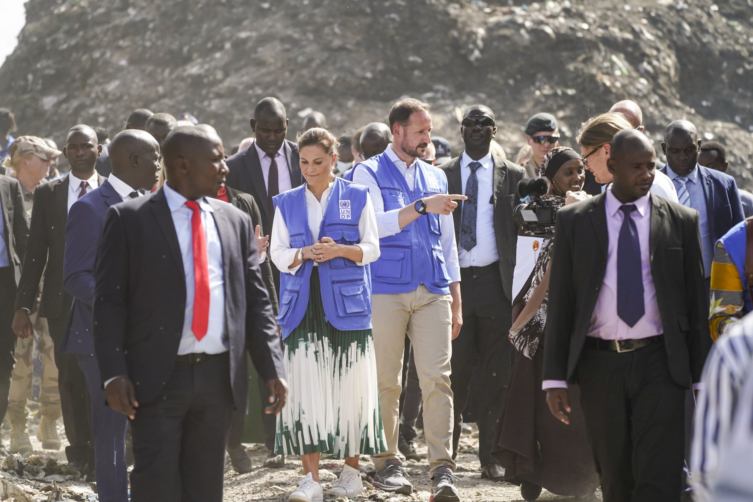 Haakon en Victoria gingen op de eerste dag naar een afvalverwerkingsbedrijf net buiten hoofdstad Nairobi. Daar wordt gewerkt aan een nieuwe manier om vervuiling door plastic tegen te gaan. De twee spraken er onder anderen met werknemers.