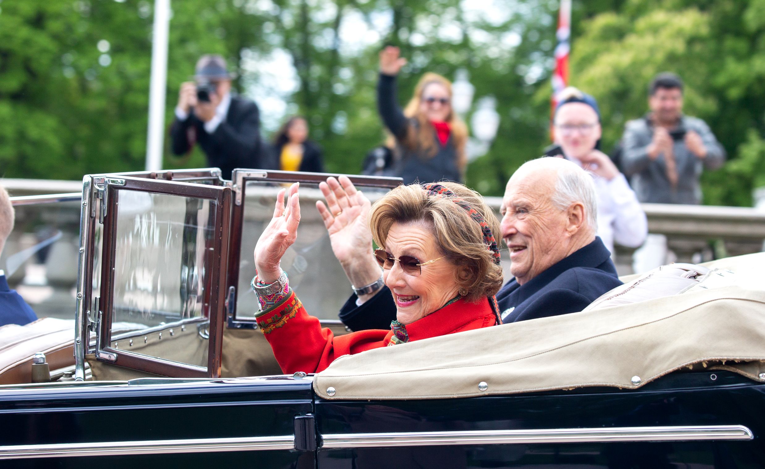 Meteen daarna stapte het koningspaar in de gereedstaande Roadmaster, een oldtimer met open dak uit 1939 – die vanwege de nummerplaat wordt aangeduid met A1 – voor een korte rijtoer. De auto had op 7 juni 1945 de toenmalige koninklijke familie bij terugkeer na de Tweede Wereldoorlog ook door de straten van de hoofdstad gereden. Koning Harald en koningin Sonja werden gevolgd door het kroonprinselijk paar in eveneens open A5, een Lincoln Continental waarin ze ook bij hun huwelijk hadden gereden.