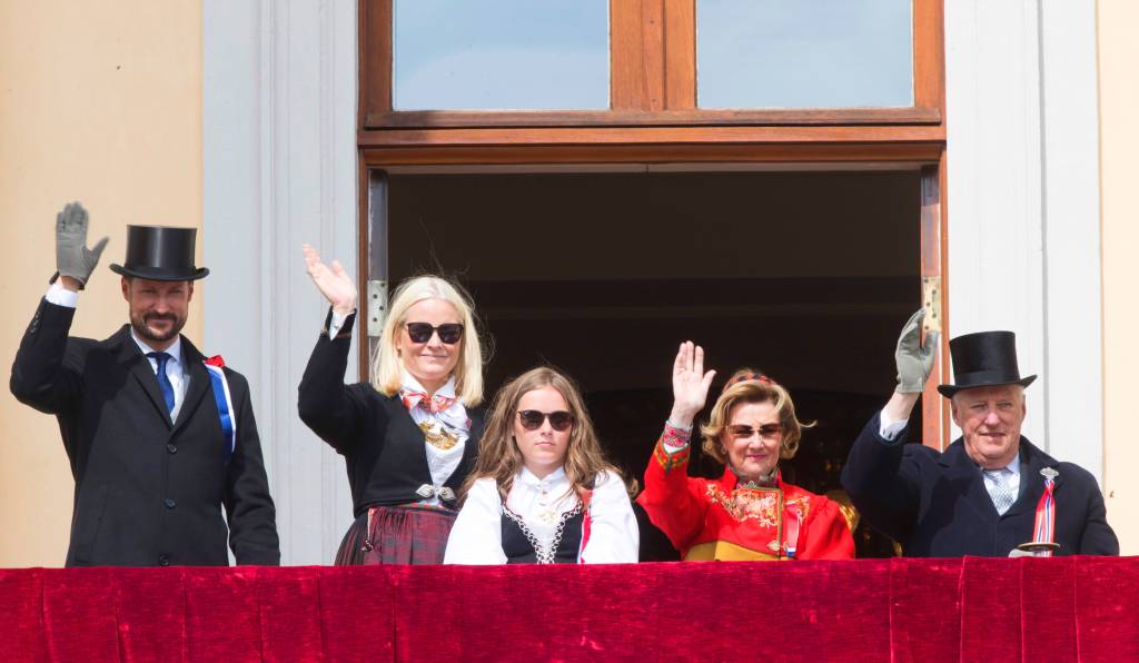 De koninklijke familie verscheen op het balkon vanwege de nationale feestdag. Op 17 mei viert Noorwegen dat in 1814 de eigen grondwet tot stand kwam. Dat doet het land onder meer met een optocht van scholen, die langs het Koninklijk Paleis loopt. Dit jaar namen 117 scholen, vier minder dan vorig jaar, deel aan het defilé.