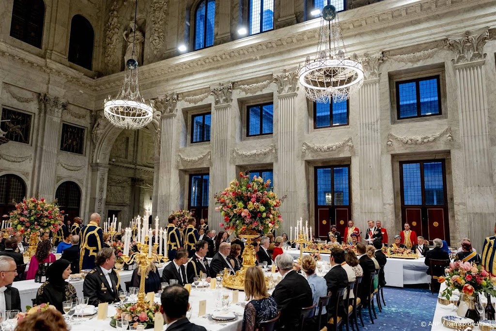 Bij het staatsbanket voor sultan Haitham bin Tarik van Oman in het Koninklijk Paleis in Amsterdam op de Dam krijgen de gasten onder meer aspergesoep en parelhoenfilet geserveerd. In het menu is geen varkensvlees of alcohol verwerkt.