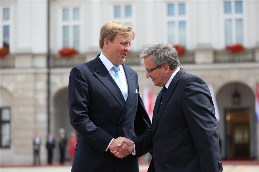 De Poolse president Bronislaw Komorowski en zijn echtgenote Anna Komorowska wachtten het bezoek op. In het paleis heeft het koninklijk paar een onderhoud met de Poolse president die hen later in zijn residentie het Belweder-paleis ontvangt voor een lunch.