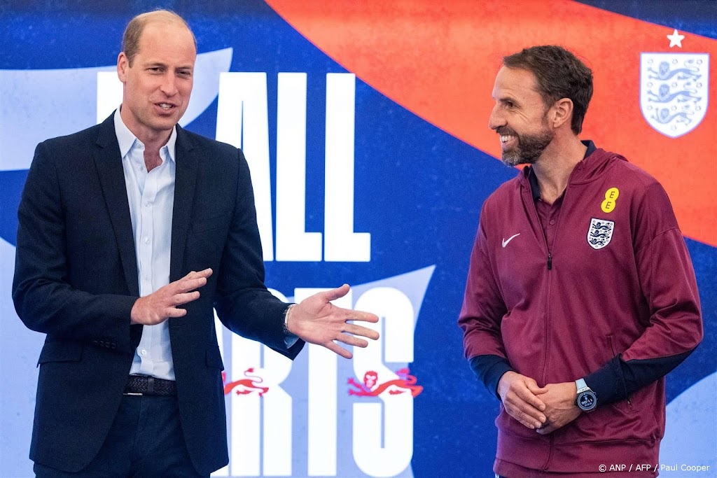 De prins is voorzitter van de Britse voetbalbond FA. Maandag ontmoette William de Engelse voetballers op St George’s Park om hen succes te wensen.