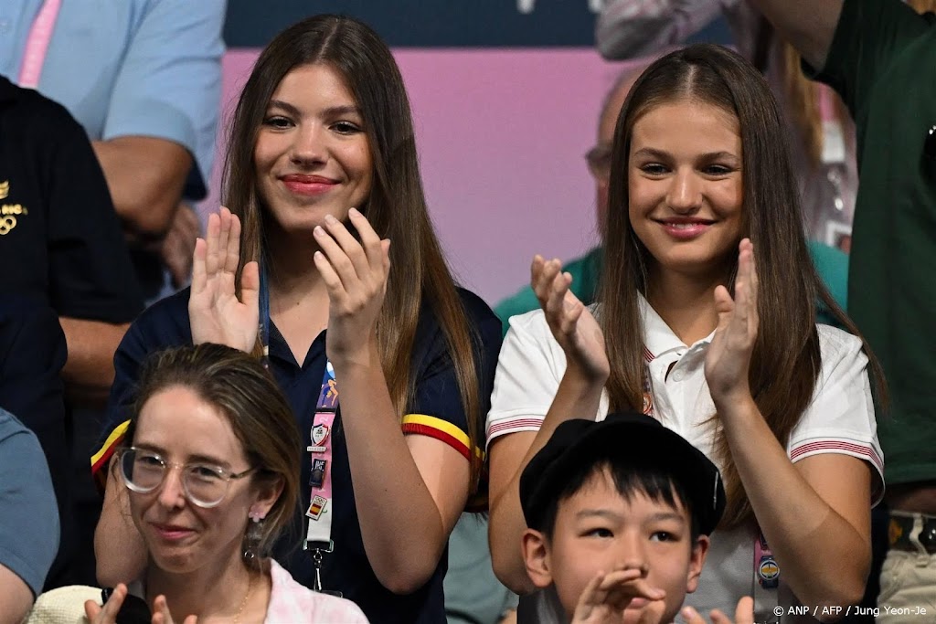 De Spaanse prinsessen Leonor en Sofia zijn nog steeds in Parijs voor de Olympische Spelen. De dochters van koning Felipe en koningin Letizia gingen dinsdag kijken bij het tafeltennis, waar hun landgenoot Álvaro Robles in actie kwam.