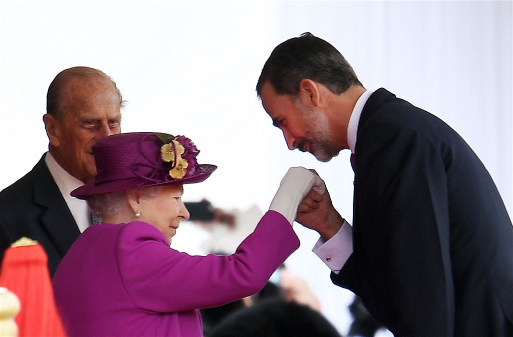 Koningin Elizabeth en prins Philip hebben vrijdagmorgen op Buckingham Palace officieel afscheid genomen van koning Felipe en koningin Letizia van Spanje. Die besluiten later op de dag in Oxford hun driedaagse staatsbezoek aan Groot-Brittannië.