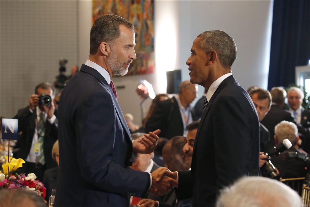 Bij de lunch had Felipe een plaats aan tafel met Obama en de staatshoofden van onder meer Chili en Colombia, alsmede premier May. Koningin Letizia ondertussen had haar eigen programma, met onder meer overleg met de directeur-generaal van de VN-landbouworganisatie FAO, José Graziano Da Silva. Letizia is speciaal pleitbezorger van de FAO op het gebied van gezonde voeding.