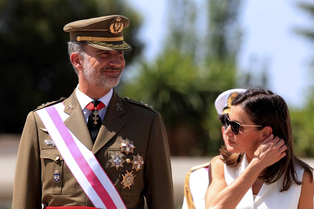Koning Felipe en koningin Letizia waren woensdag aanwezig bij de beëdiging van nieuwe officieren en onderofficieren op de militaire academie in Madrid.