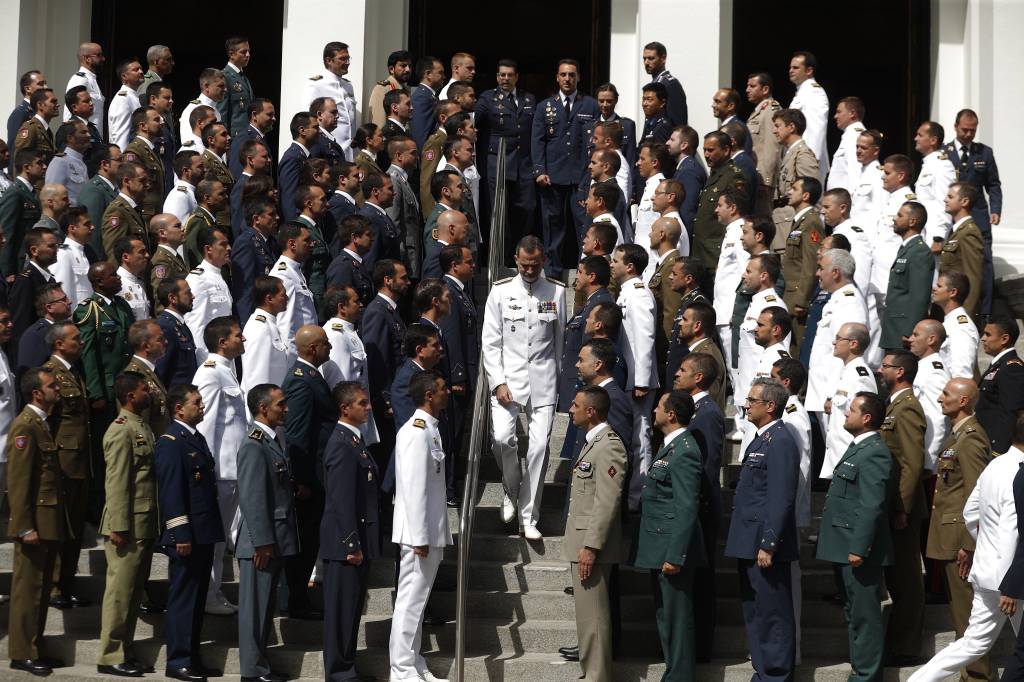 Felipe, gekleed in zijn uniform van opperbevelhebber van de marine, speldde ook nog een speciale onderscheiding op de borst van kapitein Jaime Muñoz Delgado. Die behaalde namelijk de beste cijfers van zijn jaar.