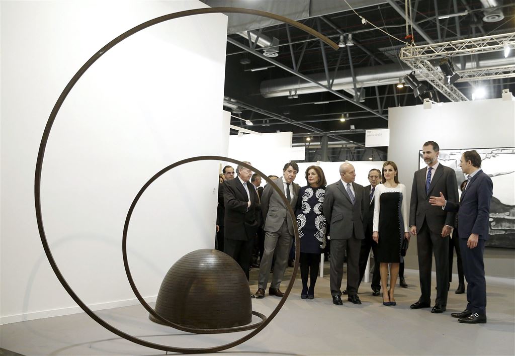 Het Spaanse koningspaar liet zich vergezellen door de minister van Onderwijs, Cultuur en Sport en de burgemeester van Madrid, Ana Botella. De koning en koningin spraken met verschillende kunstenaars en de organisatoren van de tentoonstelling.