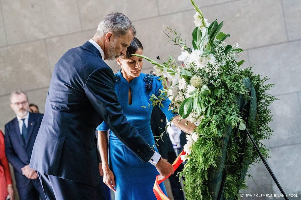 De Spaanse koning Felipe en koningin Letizia hebben maandagmiddag een krans gelegd tijdens hun staatsbezoek aan Duitsland. Dat deden zij bij de Neue Wache in Berlijn, dat tegenwoordig een monument is voor slachtoffers van oorlog en tirannie.