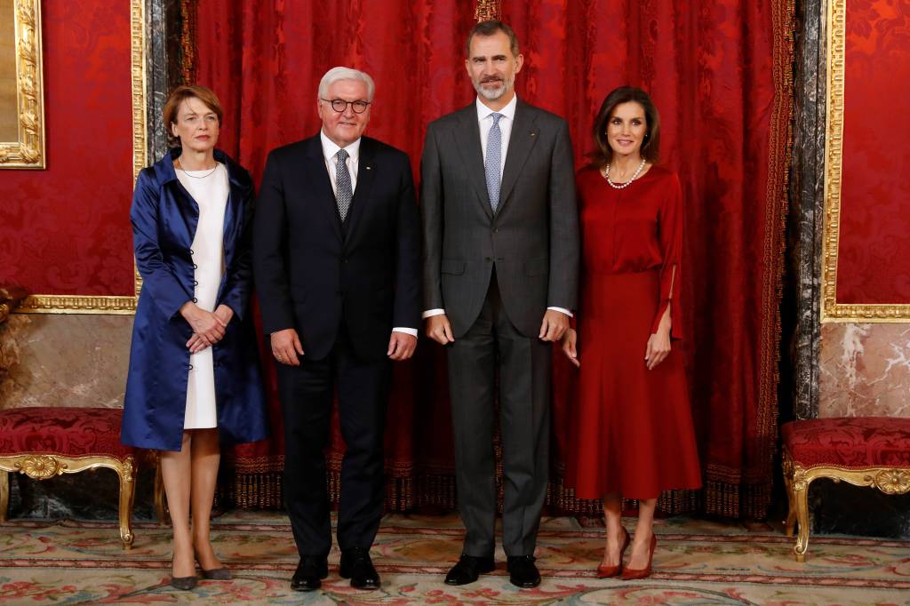 Koning Felipe en koningin Letizia van Spanje hebben bezoek gehad van de Duitse bondspresident Frank-Walter Steinmeier en zijn vrouw Elke Büdenbender. De twee kregen op het Zarzuela-paleis in Madrid een lunch aangeboden.
