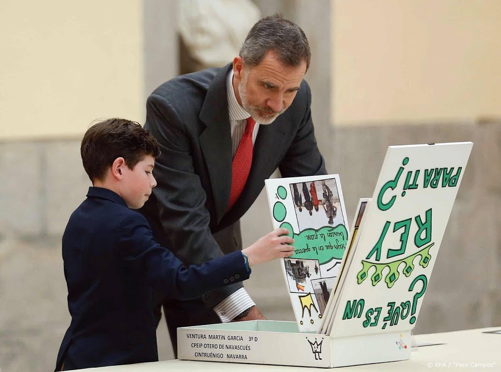 In het kader van de wedstrijd ‘Wat is een koning voor jou?’ heeft koning Felipe maandag een aantal schoolkinderen over de paleisvloer gekregen. De scholieren waren de winnaars van de wedstrijd die georganiseerd wordt door de Spaanse Institutionele Stichting FIES.