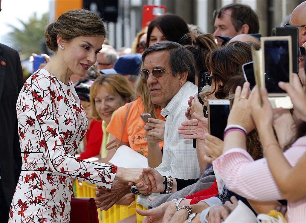 Het is voor het eerst dat Felipe en Letizia samen als koningspaar een bezoek brengen aan de Canarische eilanden. Letizia droeg maandag een creatie van Carolina Herrera. Ze droeg het ensemble eerder tijdens trips naar New York en Portugal.
