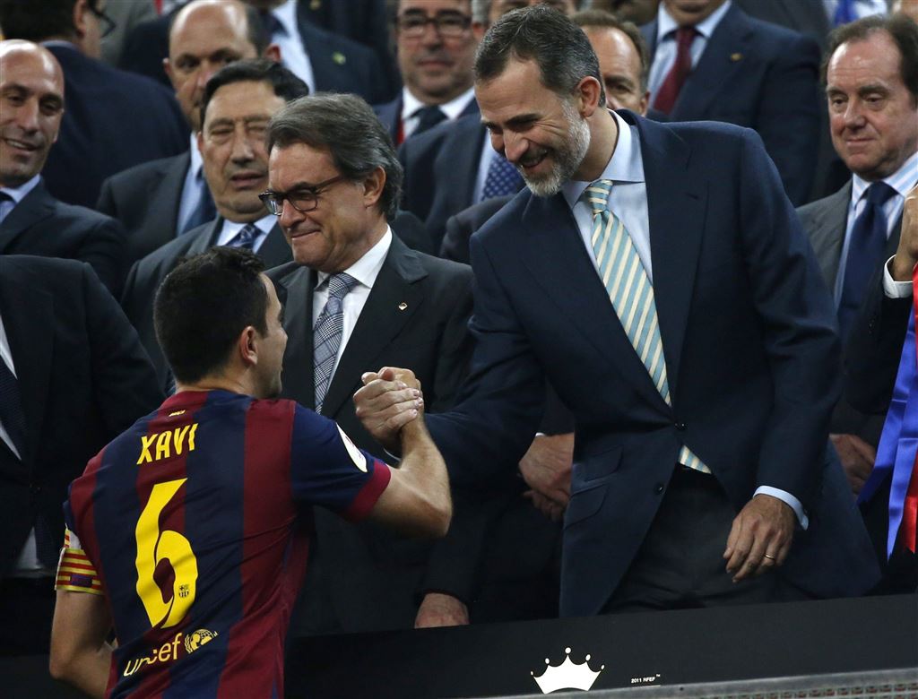 De ploeg van trainer Luis Enrique was zaterdag in de finale veel te sterk voor Athletic Bilbao en verzekerde zich van de ‘dubbel’ (3-1). Na afloop van de wedstrijd feliciteerde Felipe Barclona-speler Xavi Hernandez.