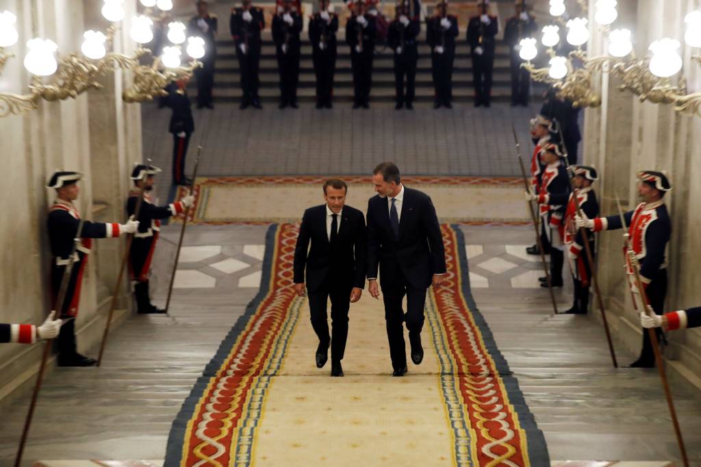 De Spaanse koning Felipe heeft donderdagavond president Emmanuel Macron van Frankrijk op bezoek gehad. Het Franse staatshoofd is in Spanje voor een werkbezoek. Hij kreeg van Felipe een diner aangeboden in het Zarzuela paleis in Madrid. De Spaanse premier Pedro Sánchez schoof ook aan.