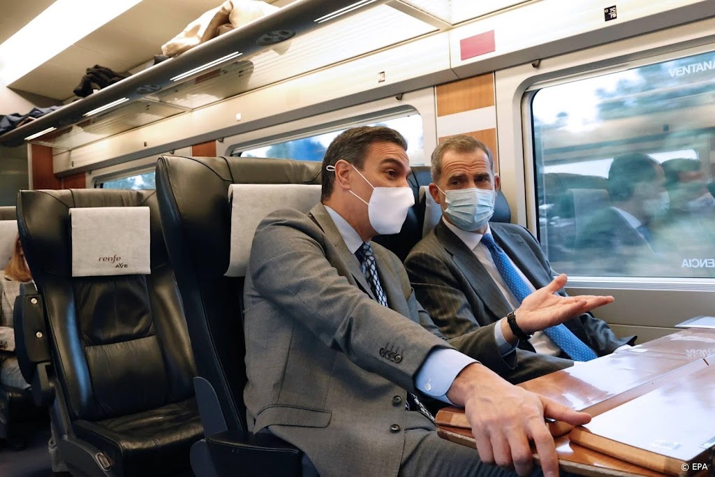 Felipe stapte maandagochtend op de trein vanaf het station Chamartín in de Spaanse hoofdstad. De koning werd vergezeld door onder anderen premier Pedro Sánchez, meerdere ministers en medewerkers van de trein.
