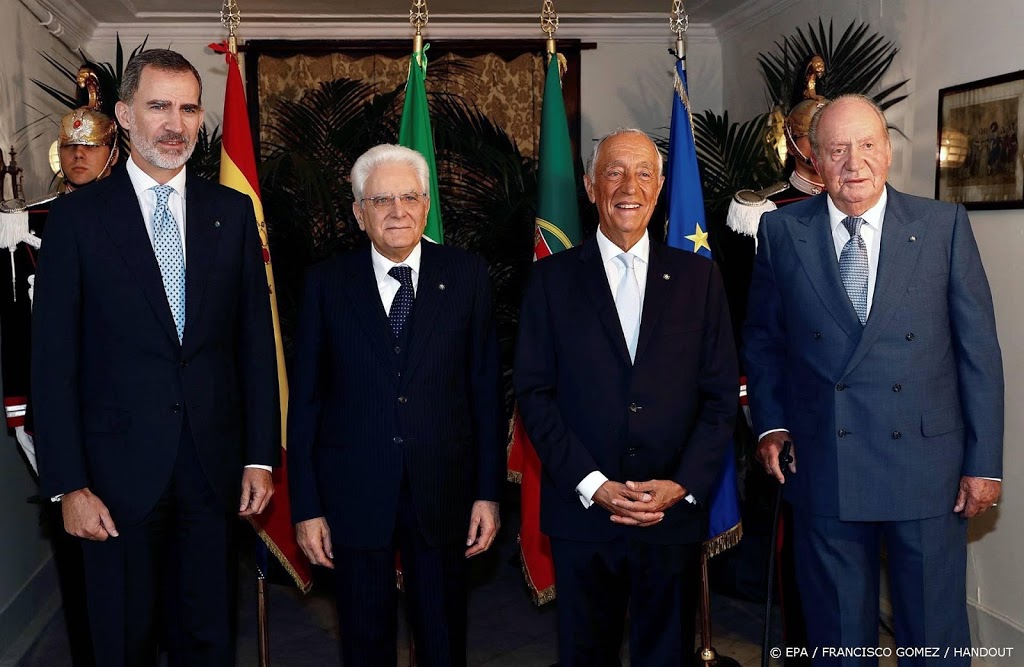 Koning Felipe van Spanje en zijn vader Juan Carlos waren dinsdag in het Italiaanse Napels erevoorzitters van het Cotec Europa Symposium. Ze kwamen samen met president van Portugal Marcelo Rebelo de Sousa en de Italiaanse president Sergio Mattarella naar het theater van Napels.