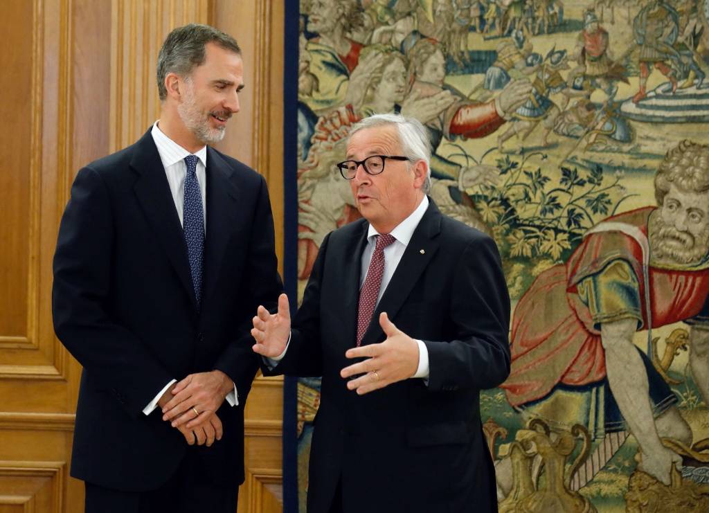 Koning Felipe van Spanje heeft donderdag de voorzitter van de Europese Commissie Jean-Claude Juncker in audiëntie ontvangen op het Zarzuela Paleis in Madrid.