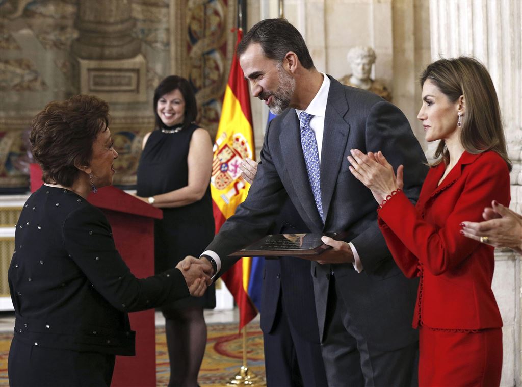 MADRID – De Spaanse koning Felipe en zijn vrouw koningin Letizia hebben donderdag in het koninklijk paleis in Madrid de Nationale Onderzoeksprijzen van 2014 uitgereikt. De awards gingen naar vijf onderzoekers die werken in de geneeskunde, biologie, rechtsgeleerdheid en economie, techniek en de sociale wetenschappen.