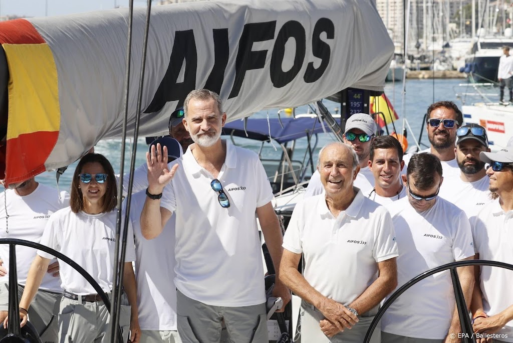 Koning Felipe is maandag op Mallorca aan boord gestapt van het jacht Aifos 500 voor de eerste wedstrijddag om de Koningscup. Vlak voor de start van de jaarlijkse zeilcompetitie poseerde de Spaanse vorst in de haven van Portopí met zijn crew op het dek van de boot.