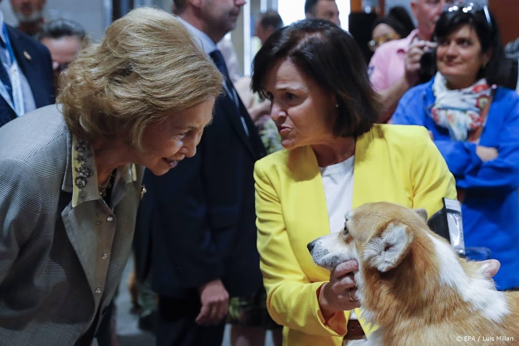 Koningin Sofia van Spanje heeft vrijdag een kijkje genomen bij de hondenbeurs in Madrid. De moeder van koning Felipe is een groot hondenliefhebster en had de dag van haar leven.