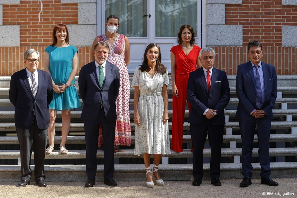 Op foto’s die het hof online heeft gedeeld, is te zien hoe Letizia en het gezelschap op het bordes van het paleis poseren. Ook hield de Spaanse koningin een kringgesprek met de vertegenwoordigers van de krant.
