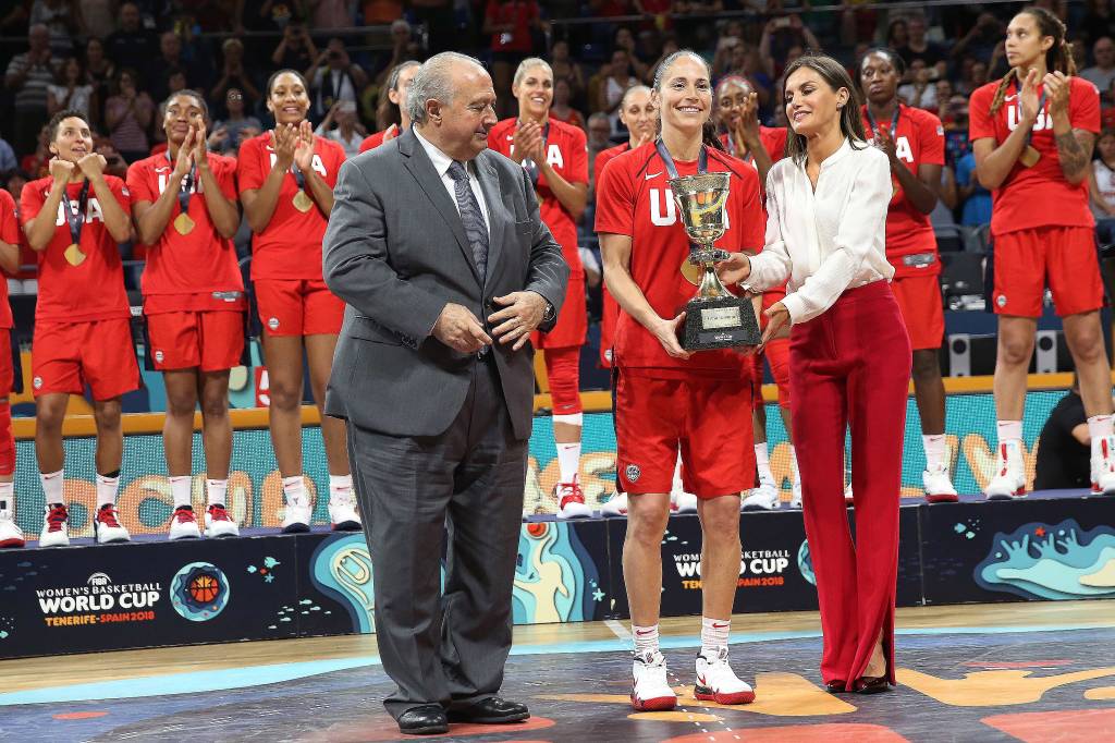 Koningin Letizia van Spanje heeft zondag op Tenerife de basketbalfinale van het wereldkampioenschap voor vrouwen bijgewoond. Na afloop kreeg ze de eer om de wereldbeker uit te reiken.