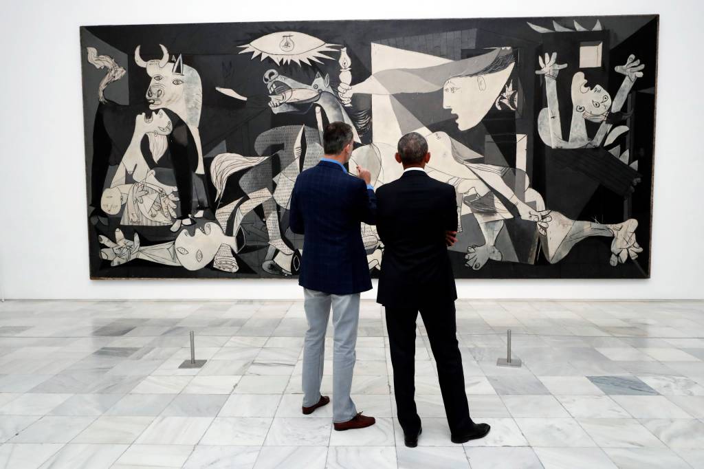 Felipe en Obama bekeken in het museum onder meer schilderijen van Salvador Dalí en het wereldberoemde schilderij Guernica van Pablo Picasso.