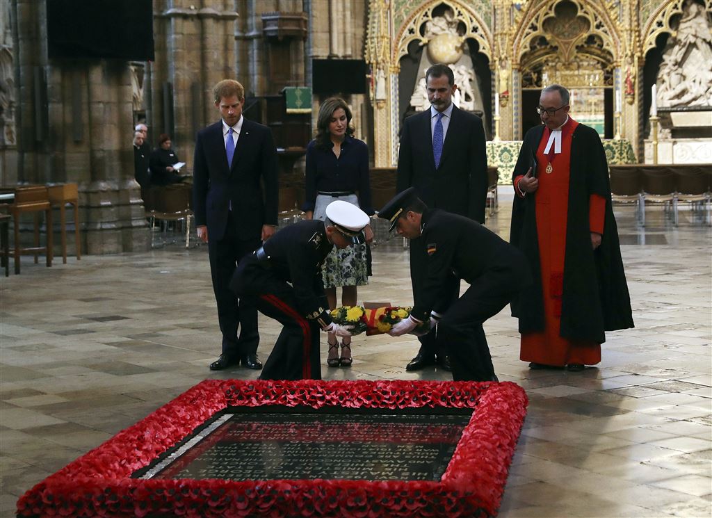 Harry keek toe hoe koning Felipe een krans legde bij het graf van de onbekende soldaat. Vervolgens kreeg de prins met Felipe en Letizia een korte rondleiding door de kerk. Daarbij werd ook het graf van Eleonora van Castilië bezocht. De Spaanse prinses trouwde in de dertiende eeuw met de Engelse koning Edward I en is een verre voorouder van koning Felipe.