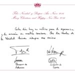 Dit jaar heeft de Spaanse koninklijke familie gekozen voor een kerstkaart met daarop een foto van prinses Leonor die haar zusje, infanta Sofía, stevig vasthoudt. De foto is genomen op het koninklijk paleis. Aan de binnenkant van de kaart staat een handgeschreven boodschap door koning Felipe: “Elke dag is er reden voor hoop en harmonie in ons hart,” schrijft hij onder meer. De kaart is ondertekend door de koning, koningin en hun beide dochters. Het is niet voor het eerst dat alleen de prinsesjes op de kerstkaart staan. Ook in 2010 en 2012 sierden de twee dochters samen de kaart.