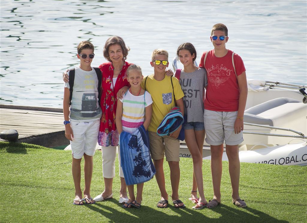 De koningin en haar kleinkinderen, Pablo Nicolas, Irene, Miguel, Victoria Federica and Juan Valentin, gingen maandag langs bij een zeilschool genaamd Calanova in de stad Palma de Mallorca. Vorig jaar volgden de kleinkinderen van Sofia er zeilles tijdens hun vakantie in Mallorca. De Spaanse krant El Mundo schrijft dat de kinderen ook dit jaar weer lessen zullen gaan volgen bij de school.