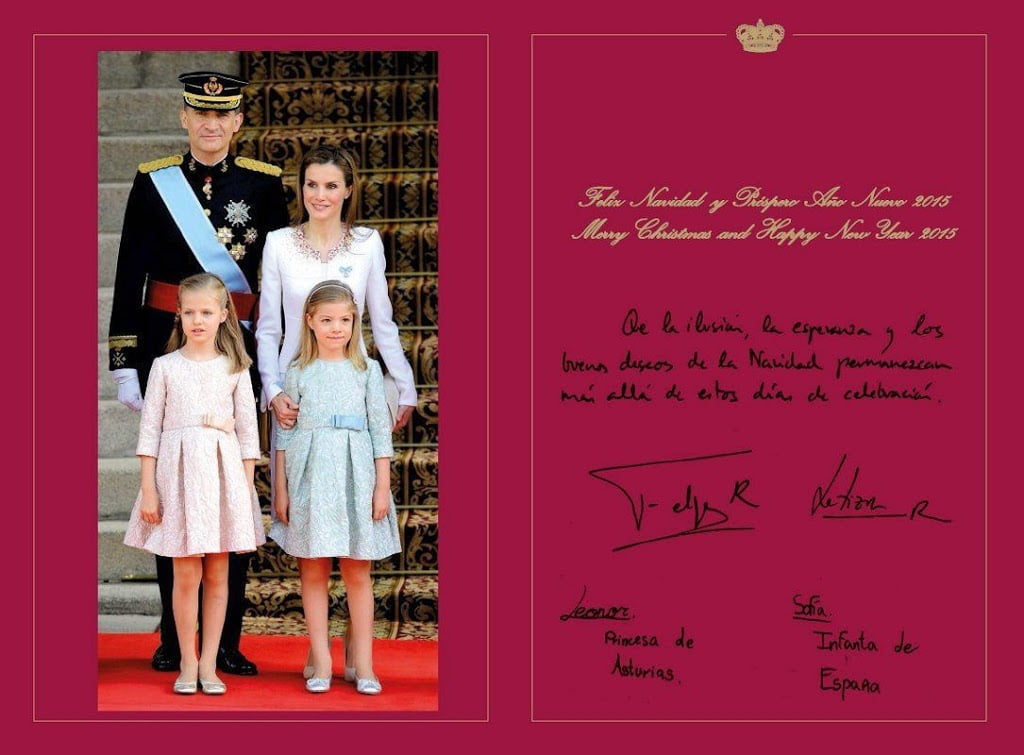Naast de afbeelding staat zowel in het Spaans als in het Engels: “Zalig kerstfeest en een gelukkig 2015”. Daaronder is een persoonlijke boodschap van de koninklijke familie te lezen: “Dat de kerstverlangens ook na deze feestdagen voort mogen duren.”