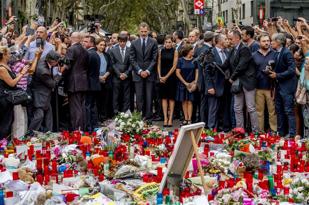 Felipe en Letizia bekeken de bloemenzee die na de aanslag is ontstaan in het toeristische hart van Barcelona. Honderden mensen legden bloemen, knuffels en kaarsjes op de Ramblas. Ook op post-its die tegen de gebouwen aan de beroemde promenade worden geplakt, worden boodschappen achtergelaten.