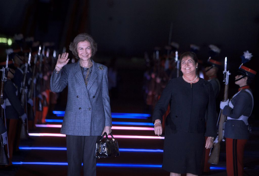 GUATEMALA CITY – De Spaanse koningin Sofía is maandagavond aangekomen in Guatemala voor een werkbezoek. Op het vliegveld werd de vorstin begroet door de first lady van het land, Rosa Leal de Perez.
