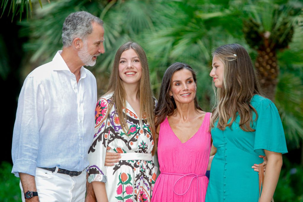 De Spaanse koning Felipe en zijn gezin hebben maandag geposeerd voor de jaarlijkse fotosessie ter gelegenheid van het begin van de zomervakantie. De familie koos dit jaar voor de historische tuinen van de Jardines de la Alfabia op Mallorca.