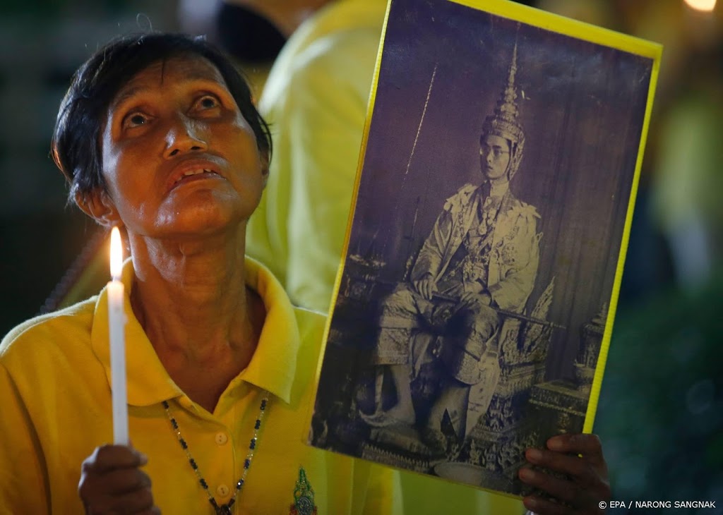 Thai waren dinsdag al vroeg op de been om eer te betonen aan de op 13 oktober 2016 overleden koning Bhumibol Adulyadej. Dat gebeurde onder meer bij het Koninklijk Paleis in Bangkok, waar zich lange rijen vormden om te bidden bij het standbeeld van de vereerde vorst dat daar staat opgesteld.