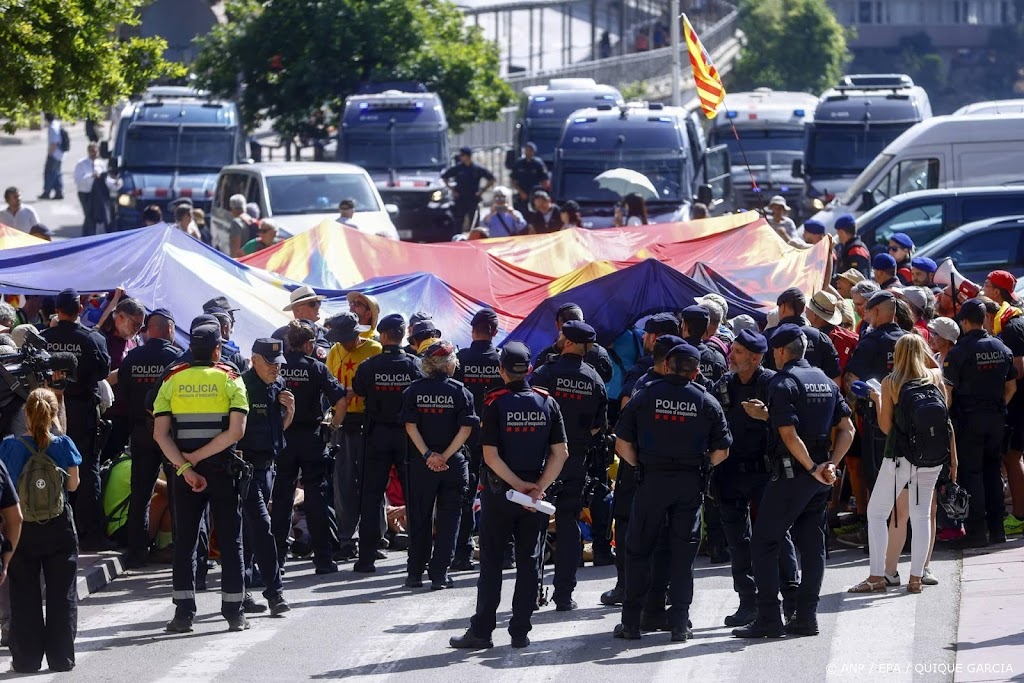 De demonstranten ontvouwden een grote Catalaanse vlag. De website Catalan News schrijft dat de groep demonstranten de politie ervan beschuldigde vlaggen in beslag te nemen.
