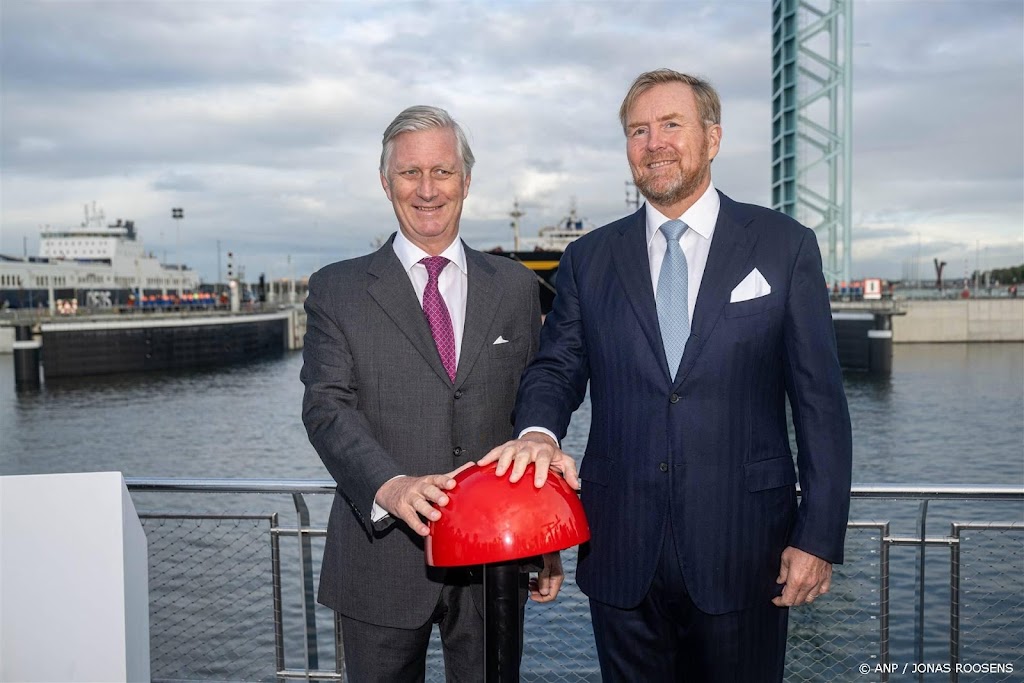 Koning Willem-Alexander heeft vrijdag een aandenken gekregen van zijn Belgische collega koning Filip. De twee koningen waren samen in Terneuzen voor de opening van de Nieuwe Sluis. Zij verrichtten de opening door samen op een grote rode knop te drukken.