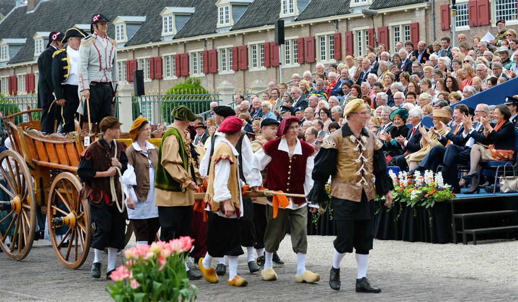 APELDOORN – Uitvallende motoren, bijna struikelende steltlopers, schichtige paarden. Het groot opgezette defilé dat zaterdag door Apeldoorn trok, was vol uitdagingen en kleine en grote vertragingen. De koninklijke bezoekers van de optocht hadden zich wijselijk dan ook opgesteld aan het begin van de stoet, daar vielen de onvermijdelijke gaten nog mee.