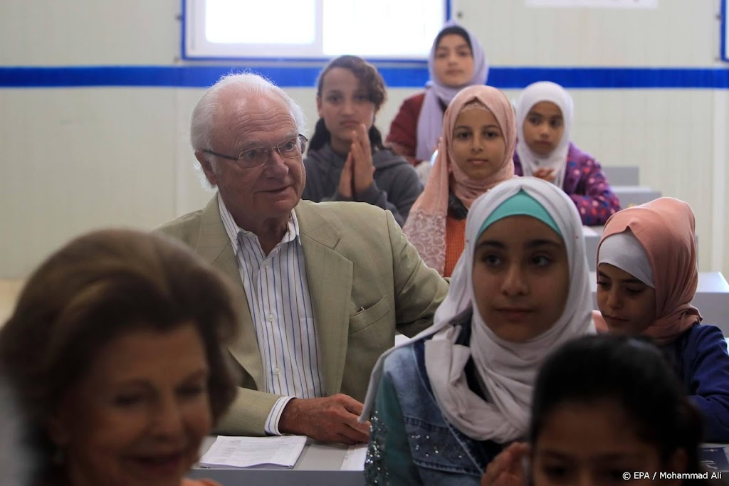 De Zweedse koning Carl Gustaf en koningin Silvia hebben donderdag een bezoek gebracht aan het enorme vluchtelingenkamp Zaatari in Jordanië, waar veel Syrische vluchtelingen worden opgevangen.