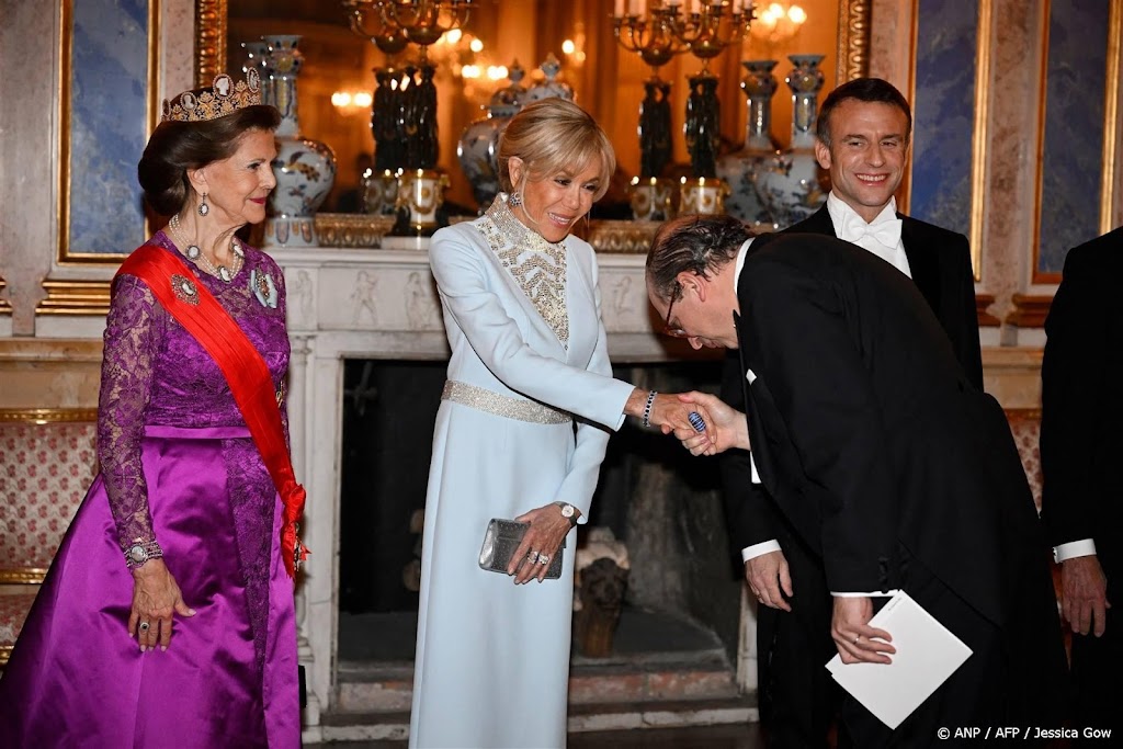 De eerste dag van het tweedaagse bezoek van de Franse president Emmanuel Macron en zijn vrouw Brigitte aan Zweden is dinsdagavond afgesloten met een galadiner in het koninklijk paleis in Stockholm. Het presidentieel paar zat daarbij aan tafel met onder anderen de Zweedse koning Carl Gustaf, koningin Silvia, kroonprinses Victoria, prins Daniel, prins Carl Philip en prinses Sofia. Ook waren er Zweden uitgenodigd die een speciale band hebben met Frankrijk.
